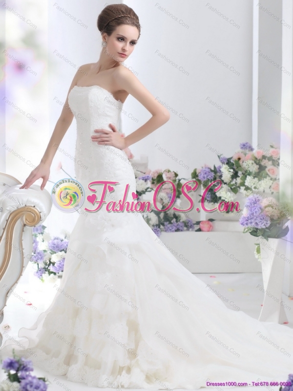 2015 and New Wonderful Strapless Wedding Dress with Brush Train