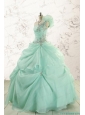 2015 Apple Green One Shoulder Cheap Quinceanera Dresses with Appliques
