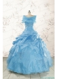 2015 Aqua Blue Hot Sale Appliques Quinceanera Dresses