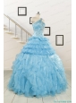 2015 Baby Blue One Shoulder Sweet 15 Dresses with Beading