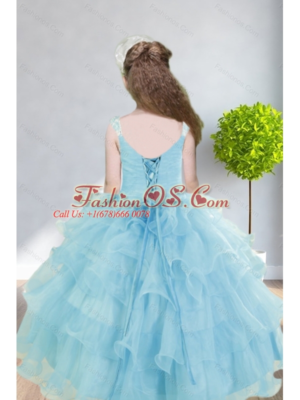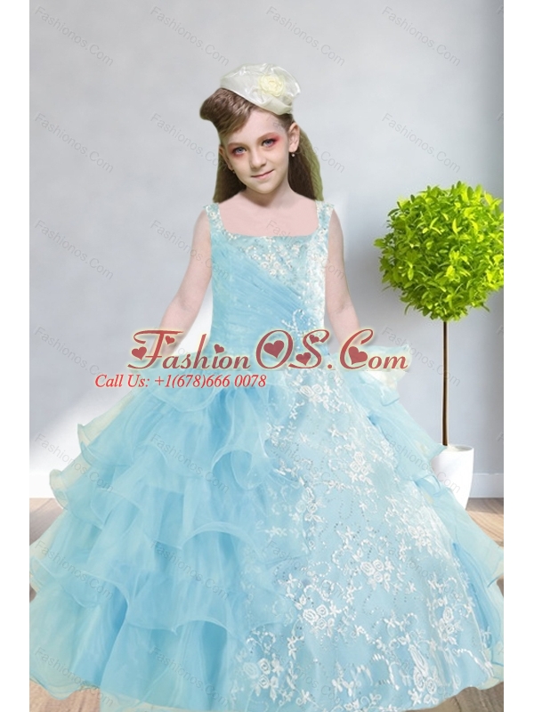 Home >  Special Occasion Dresses >  New Style Little Girl Pageant Dresses > 2015 Ball Gown Appliques and Ruffles Baby Bule Little Girl Pageant Dress with Straps