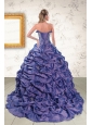 2015 Beaded and Pick ups Purple Quinceanera Dresses with Brush Train