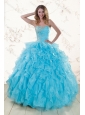 2015 Beautiful Baby Blue Sweet 16 Dresses with Beading and Ruffles