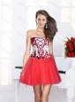 2015 Beautiful Coral Red Prom Dresses with Embroidery and Beading