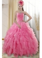 2015 Beautiful Rose Pink Strapless Dresses for Quince with Ruffles and Beading