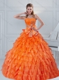2015 Beautiful Ruffles and Bowknot Sweetheart Quinceanera Dress in Orange