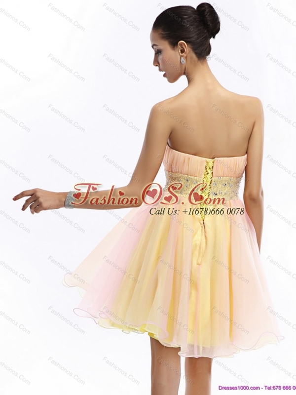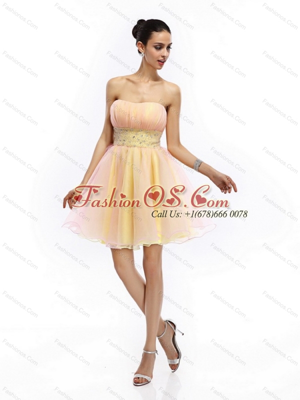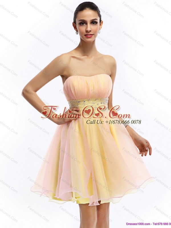 2015 Beautiful Strapless Multi Color Christmas Party Dress with Beading and Ruching