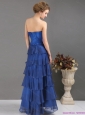 2015 Blue Sweetheart Prom Dresses with Ruffled Layers
