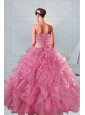 2015 Brand New Coral Red Sweet 16 Dresses with Beading and Ruffles