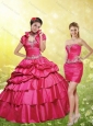 2015 Brand New Red Quince Dresses with Appliques and Pick Ups