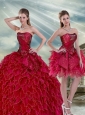 Home >  Quinceanera Dresses >  Discount Quinceanera Dresses > 2015 Brand New Wine Red Quince Dress with Ruffles and Beading