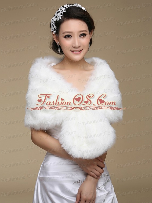 Home >  Accessories >  Wraps > 2015 Brand Pearl Front Closure Faux Fur White Wraps