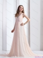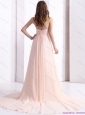 2015 Brush Train Long Prom Dresses with Beading and Ruching