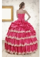 2015 Cheap Appliques Sweet 15 Dresses in Coral Red
