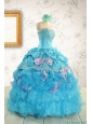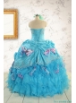 2015 Cheap Aqua Blue Appliques Quinceanera Dresses with Appliques