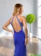 2015 Cheap Empire V Neck Criss Cross Royal Blue Bridesmaid Dresses with Appliques