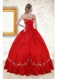 2015 Cheap Sweetheart Red Puffy Quinceanera Dresses with Embroidery