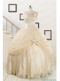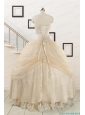 2015 Classical Appliques and Hand Made Flower Quinceanera Dresses in Champagne