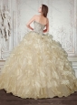 2015 Classical Champagne Quinceanera Dresses with Beading and Ruffles