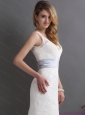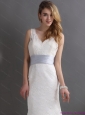2015 Classical V Neck Lace and Sash Wedding Dress
