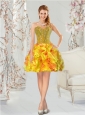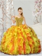 2015 Custom Made and Detachable Yellow and Orange Sweet 16 Dresses with Beading and Ruffles
