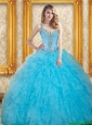 2015 Custom Made Beading Aqua Blue Quinceanera Dresses