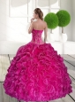 2015 Custom Made Hot Pink Quinceanera Gown with Ruffles and Appliques