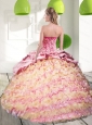 2015 Custom Made Quinceanera Gown with Ruffled Layers and Appliques