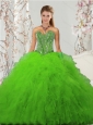 2015 Detachable Beading and Ruffles Spring Green Sweet 15 Dresses
