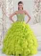 2015 Detachable Beading and Ruffles Yellow Green Dresses for Quince