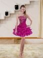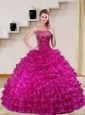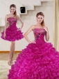 2015 Detachable Fuchsia Quinceanera Dress with Beading and Ruffled Layers