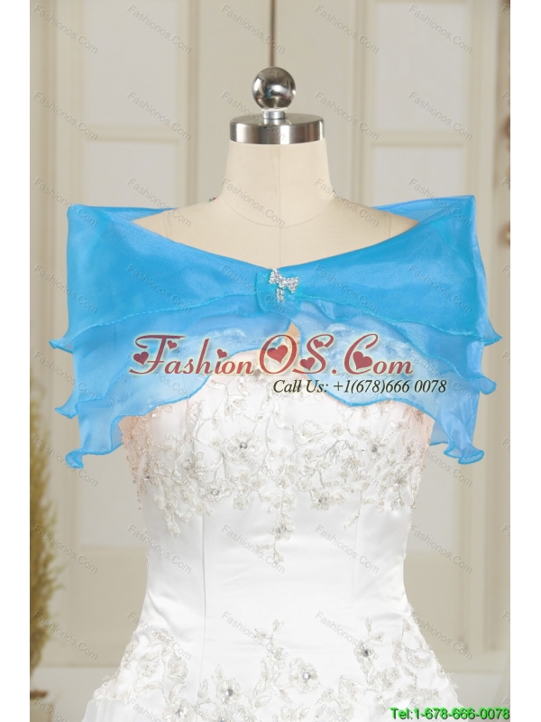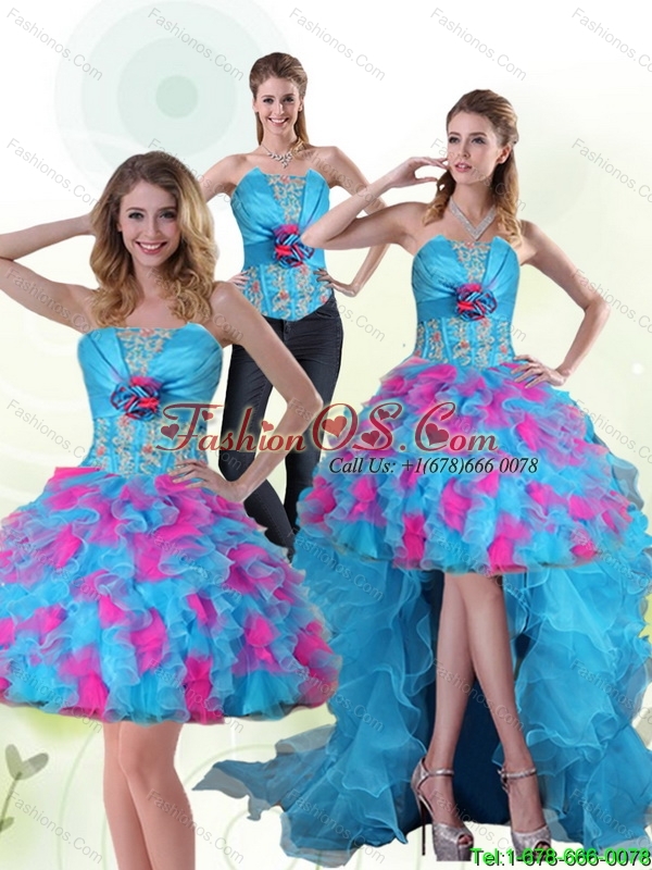 2015 Detachable Luxurious Strapless Appliques Prom Dresses with Hand Made Flower