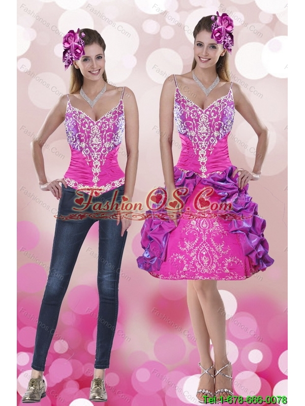 2015  Detachable New Style Spaghetti Straps Prom Dress with Embroidery and Pick Ups
