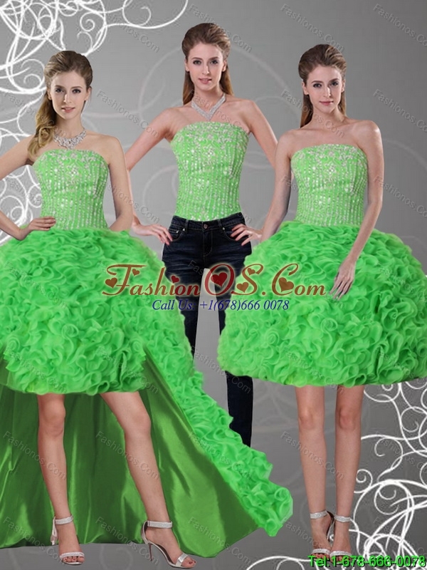 2015  Detachable New Style Spring Green Strapless Prom Dresses with Beading and Ruffles