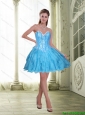 2015 Detachable Short Beading and Ruffles Baby Blue Prom Dress