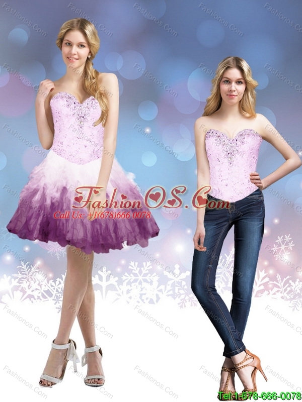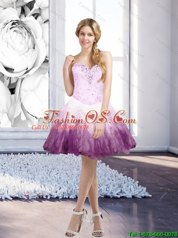 2015 Detachable Short Multi Color Prom Dress with Beading and Ruffles