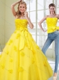 Home >  Quinceanera Dresses >  Perfect Quinceanera Dresses > 2015 Detachable Yellow Quince Dresses with Rolling Flowers and Bowknot