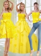 2015 Detachable Yellow Quince Dresses with Rolling Flowers and Bowknot
