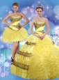 2015 Detachable Yellow Strapless Quinceanera Dress with Beading and Ruffles