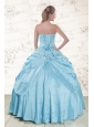 2015 Discount Aqua Blue Strapless Sweet 15 Dress with Appliques