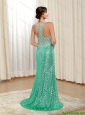 2015 Discount Column V Neck Bridesmaid GreenDresses with Sequins