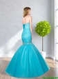 2015 Discount Mermaid Sweetheart Tulle Orange Red Prom Dresses with Beading