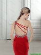 2015 Discount One Shoulder Beading and High Slit Red Prom Dresses