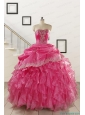 2015 Elegant Appliques and Ruffles Quinceanera Gowns in Hot Pink