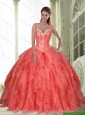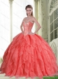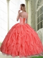 2015 Elegant Beading and Ruffles Quinceanera Dresses in Coral Red