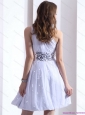 2015 Elegant Discount One Shoulder Lilac Prom Dress with Ruching and Sequins