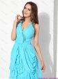 2015 Elegant Halter  Top Knee Length Prom Dress with Beading and  Ruching