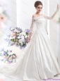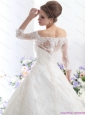 2015 Elegant Off the Shoulder Lace Wedding Dress with 3/4 Length Sleeve