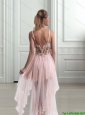 2015 Elegant Spaghetti Straps High Low Prom Dress with Appliques