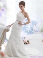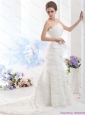 2015 Elegant Strapless Beach Wedding Dress with Beading and Ruching